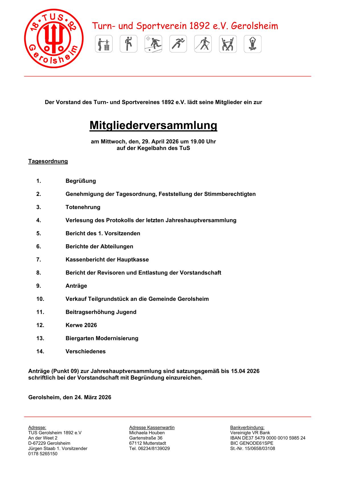 Mitgliederversammlung TuS Gerolsheim